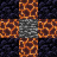 在方块破坏器上方放置炼药锅,然后右键方块破坏器放入4个圆石或4个雪球,可以制作岩浆或水。