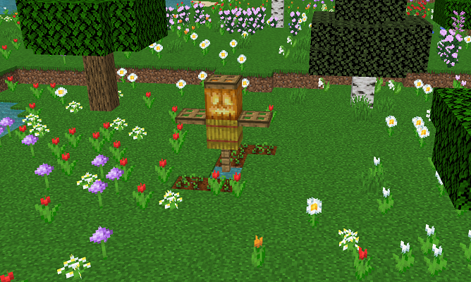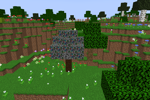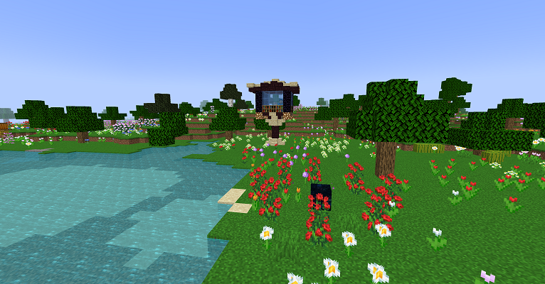 玩家首次进入时,会生成一块基岩和一个包含1泥土、4橡树树苗或樱花树树苗、16骨粉的箱子。不同玩家的间距默认为1000米。玩家破坏树叶会掉落骨粉和线,然后参考本模组原版物品合成变动,使用线和8木棍合成雪球。